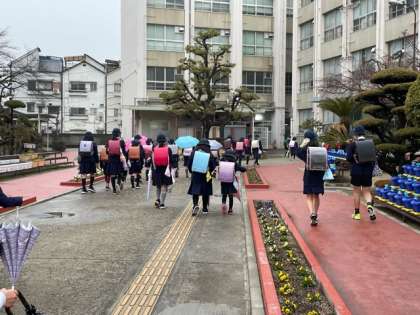ろう下、階段はすべりやすくなっているので、気をつけましょう。