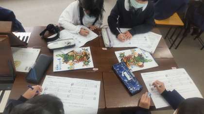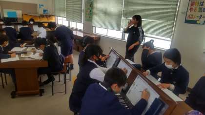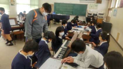 自分の作った曲と友だちが作った曲をつなげて、1つの曲にしています。