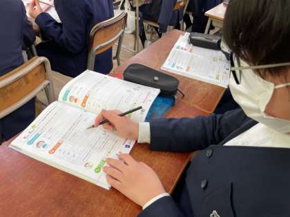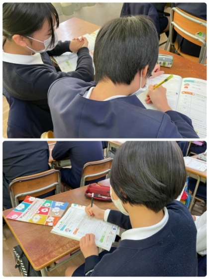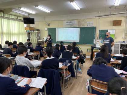 外国語の先生から、横堤中学校のいろいろなお話を聞かせてもらい、わくわくがいっぱいの6年生でした。