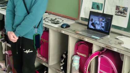 4年3組は学級休業中ですが、Teamsを使って、リモートで視聴してもらいました。