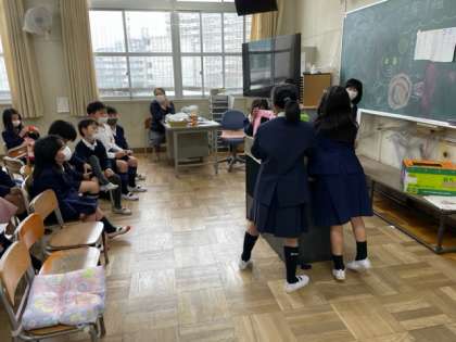 おそるおそる手をいれ、箱の中をさぐる2年生でした。