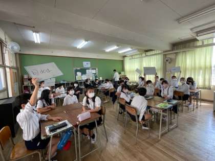 みんな知らず知らずに英語の単語を使い、クイズに答えています。