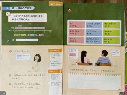 1こ20円のあめを3こ買ったときの代金を考えました。