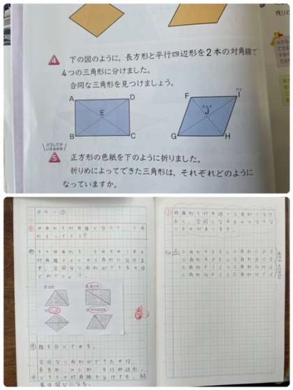 四角形の形によって、合同になるものとならないものがあることに気づきました。