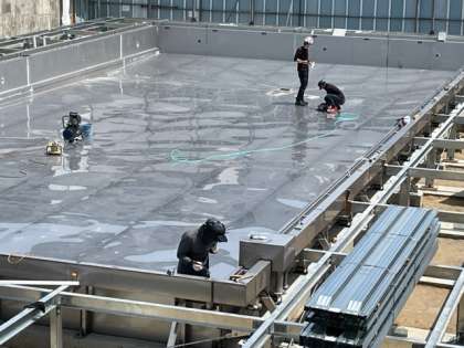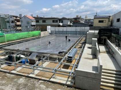 いまは、みんなが泳ぐときの、プールの中の工事をしています。