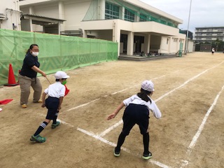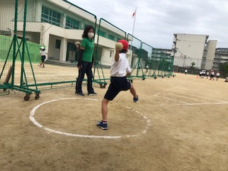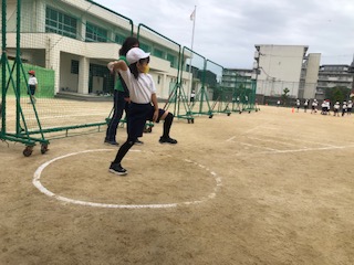 雨も止んだので、ソフトボール投げと50メートル走の記録をとりました。