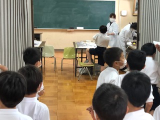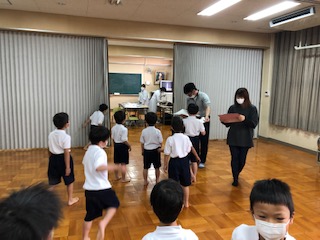 1年生は、多目的室で心臓検診を行いました。