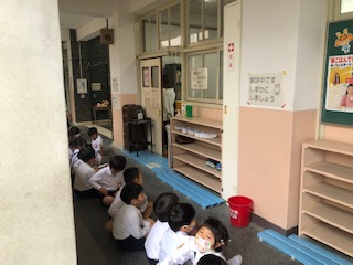 歯科校医さんに診察してもらうまで、静かに並んで待っています。