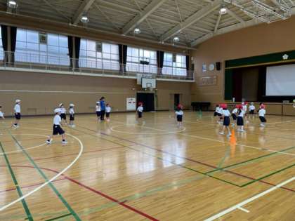 体育の学習の終わりに、「王様ドッジボール」をしました。赤チームと白チームとそれぞれに王様がいて、王様が当てられると負けになります。
