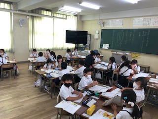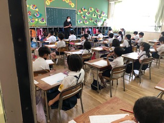 1組は、はじめてのテストをするので、テストの約束事を確認していました。