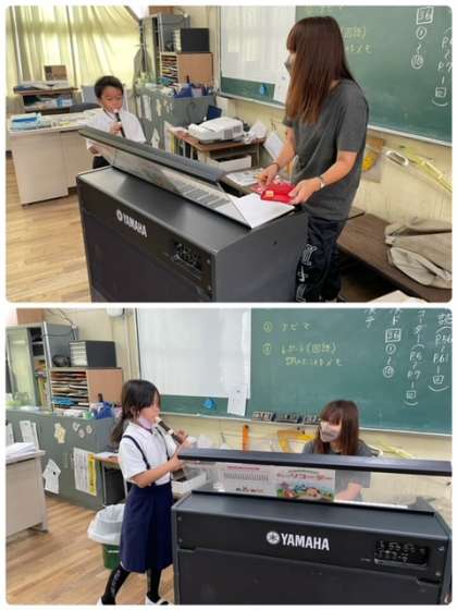 リズムに合わせて、上手に吹くことができました。