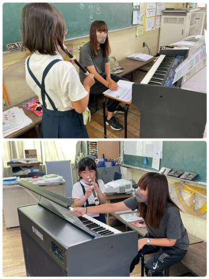 リコーダーのテストの様子です。