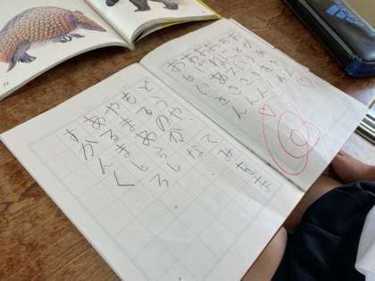 きれいな字でノートに動物の名前を