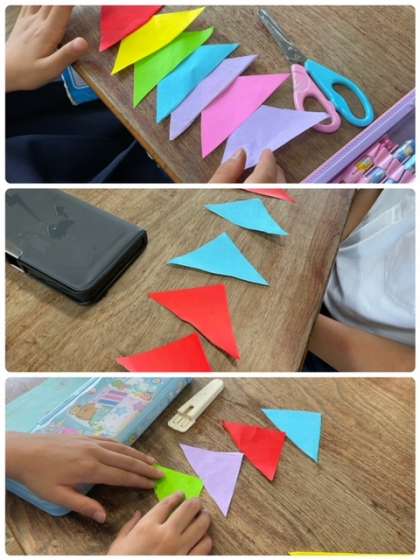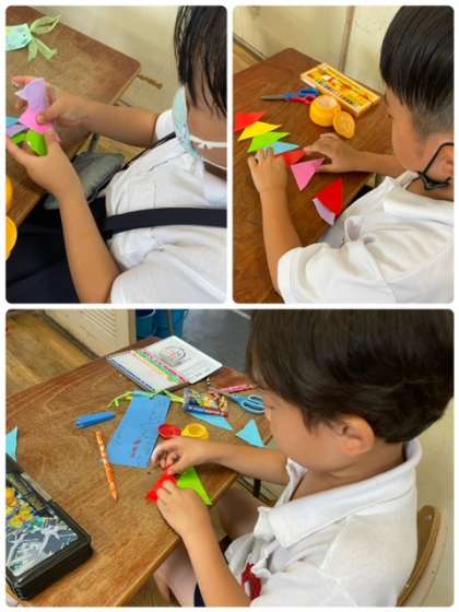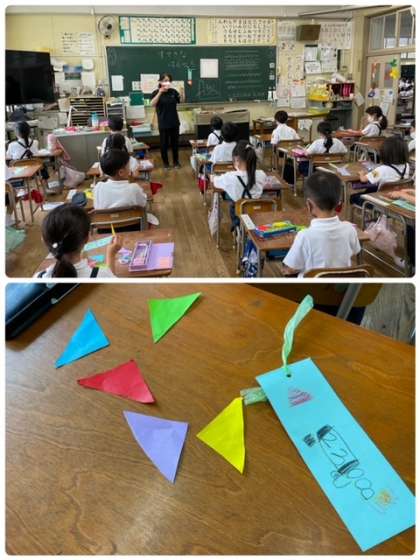 1年生は、2人のために一生懸命七夕のかざりを作っています。