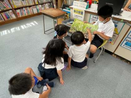 ミニミニ先生になって、みんなに本を読み聞かせるお友だち。