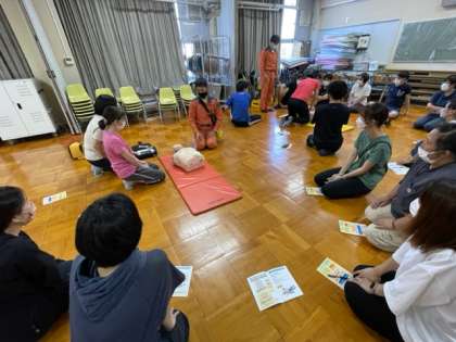 鶴見消防署の方に来ていただき、「救急救命講習」をしました。