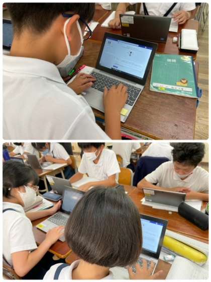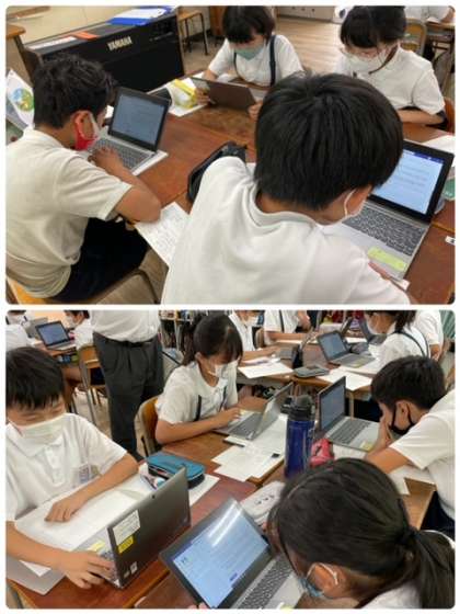 1時間の中で、自分の意見をパソコンにすばやく打ち込み、投稿するなど充実した1時間の学習でした。