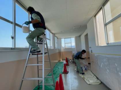 他の壁との色の違いがでないように色の濃さを調節したり、はみ出さないように細かいところまで丁寧にぬったりと手を進める管理作業員さんでした。
