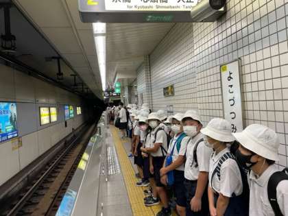 いまから電車に乗り、歴史博物館、ピース大阪へ社会見学に行きます。