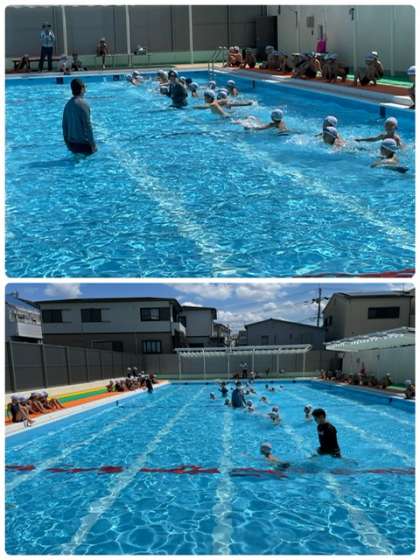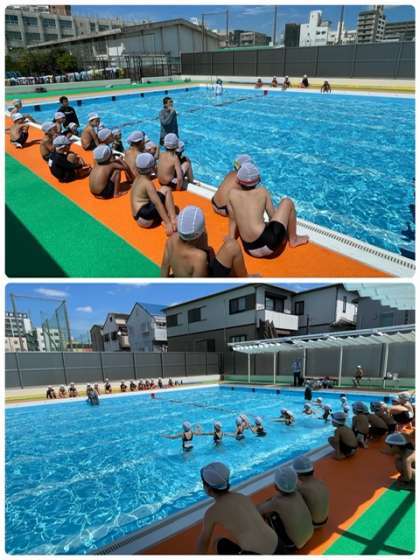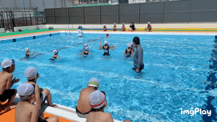 キラッキラッのきれいなプールに入り、端から端まで競争です!
