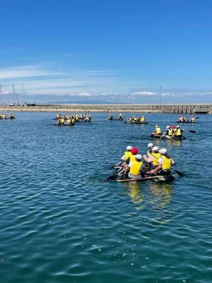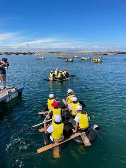 いかだに乗りながらボールを拾うゲームや水かけゲームをしました。