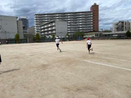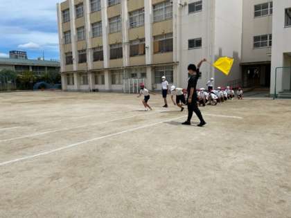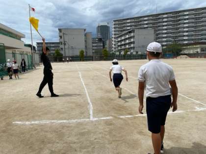 50メートル走のタイムを測り、リレーのチーム作りをしていきます。