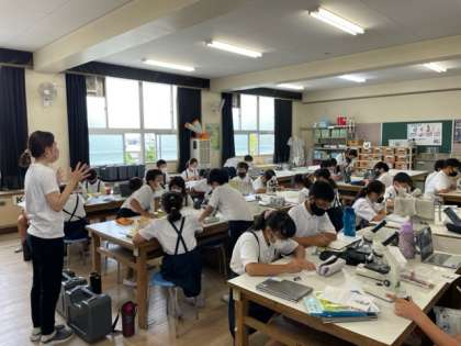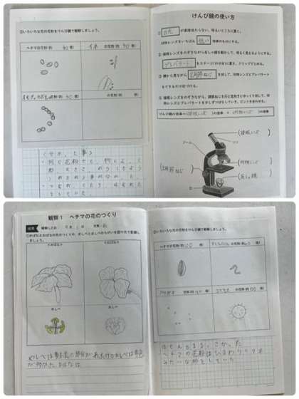 今日は顕微鏡を使って、「花粉」を観察しました。