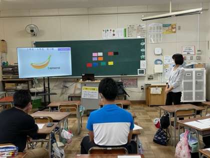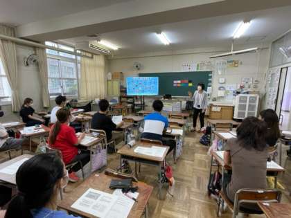 子どもたちの気持ちになり、楽しく笑顔で英語の歌を歌ったり、質問に答えたりしました。