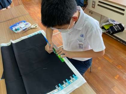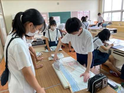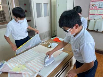 5年生で学習したことを思い出し、アイロンをかけてからミシンを使います。