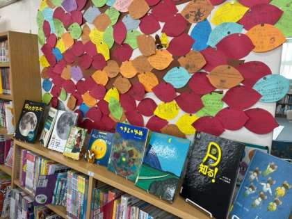 学校図書館では先日の中秋の名月にちなんで、"月の本コーナー"が出来ています。