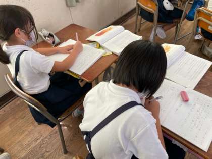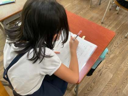 登場人物である「じんざ」に伝えたいことをノートにまとめています。