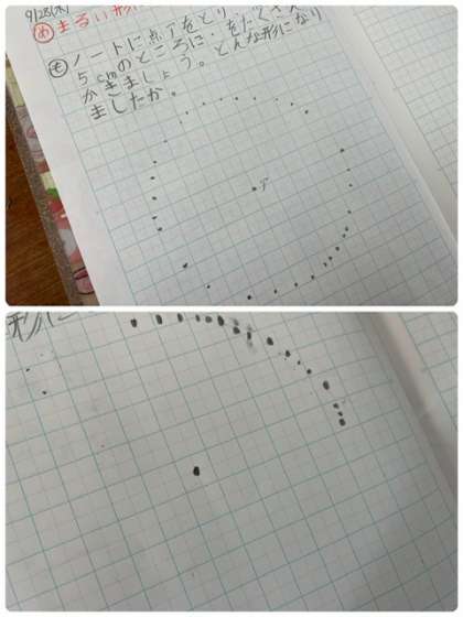中心のまわりから5センチメートルはなれたところに「点」をいっぱいうちます。