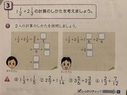 今日は、帯分数+帯分数の計算が出てきました。