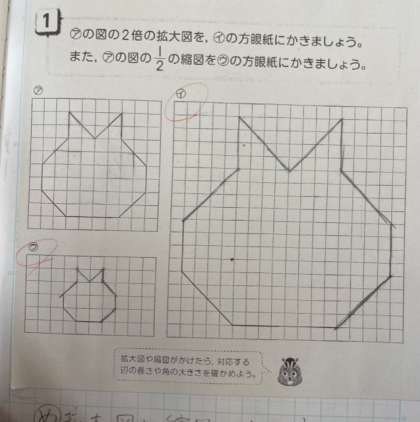 拡大図と縮図をかく学習です。