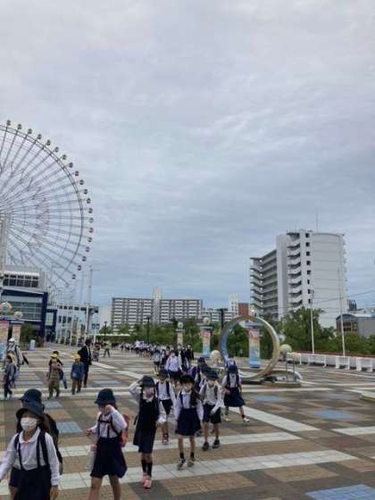 海遊館に到着。たくさんの学校が一緒です。