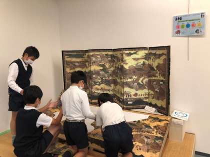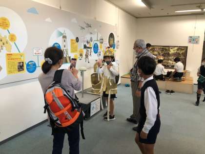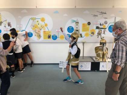 甲冑を着けてみたり、住吉祭のパズルをしたりと結構楽しんでいます。