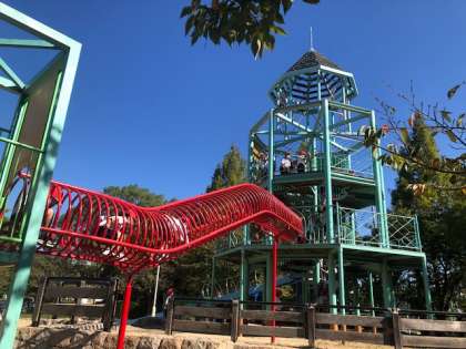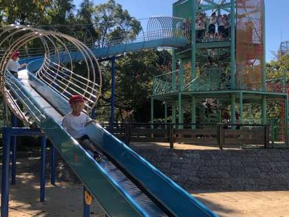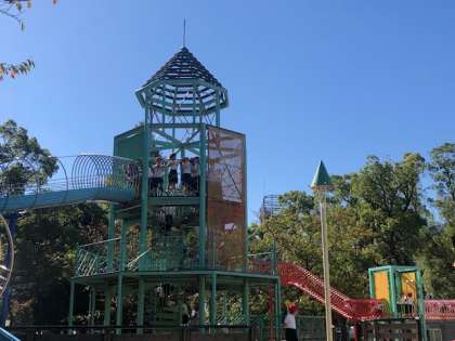 早速、遊具で遊んでいます。学校にない遊具がいっぱいなので、とても喜んで遊んでいます。いい天気で気持ちよく遊んでいます。