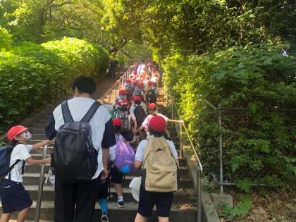 大阪城までの道のりは、1年生にとっては厳しいようです。地獄の階段と呼ぶ子もいました。