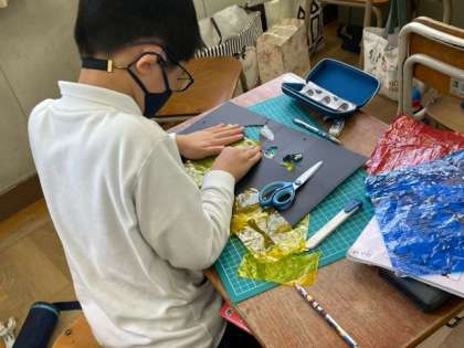 慎重に、慎重に、手をけがしないように気をつけて作業を進める2年生。