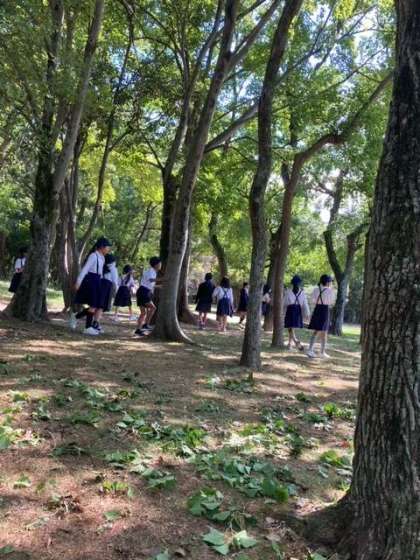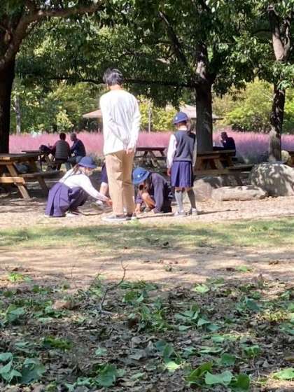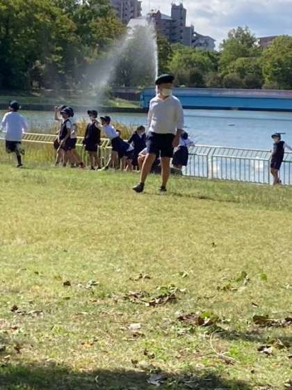 芝生で少し遊んで帰ります。鬼ごっこやだるまさんがころんだ、木の実探しなどで遊んでいます。