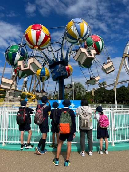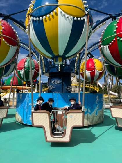 ジェットコースターやゆっくりトレインなどグループで楽しみます。
