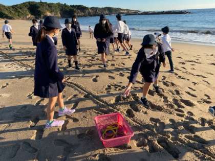 砂浜遊びとして、クラス対抗宝探しをしました。
