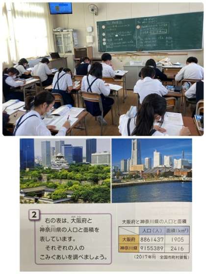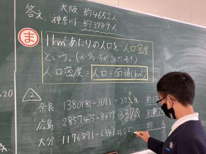 今日は、大阪府と神奈川県の人口と面積から人口密度を求めました。