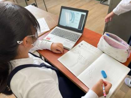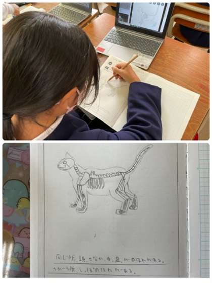 動物のからだとしくみについてタブレットで調べた図をワークシートにかき、きづいたことをまとめました。