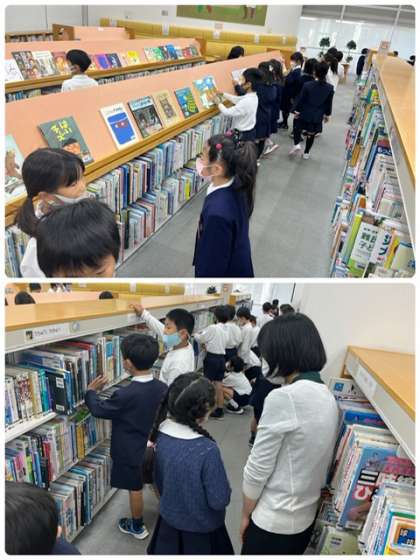 みんな楽しみ図書館見学の様子です。
