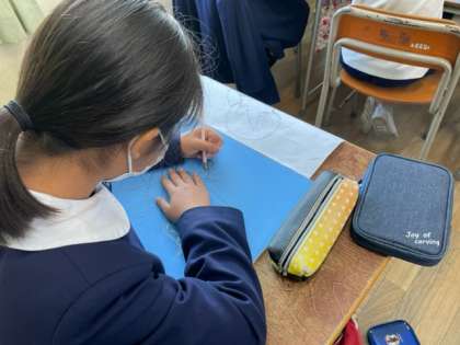 けがをするおそれがあるので、すごく集中して、もくもくと彫刻刀を扱う5年生でした。