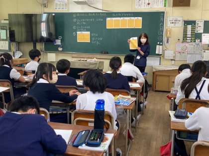 2÷3のような割り切れない数を分数で表すことを、マス図を使って考えました。
