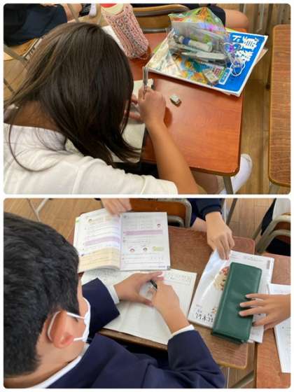 分数は割り算で表されることがわかったので、それを生かして小数を分数で表したり、分数を小数で表したりする練習をしています。あと少しでこの単元も終わりです。