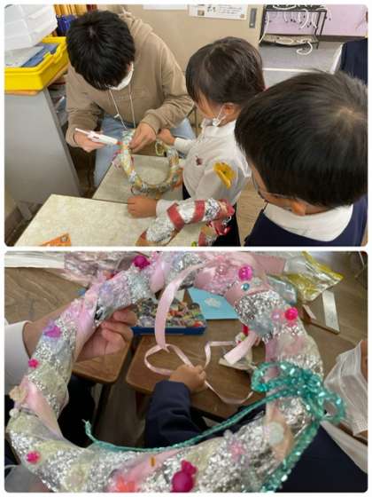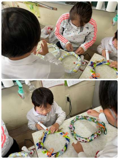 みんな楽しみ「クリスマスリース」作りです。