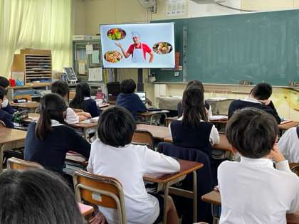 楽しくチャンツを歌ったあとは、ロイ先生の発音に続き、食べ物の発音を確認しました。